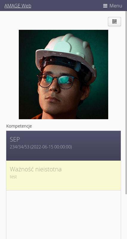 Po zeskanowaniu dowolnego identyfikatora przypisanego do pracownika system odczyta jego kompetencje i wyświetli dane identyfikacyjne. Jeśli w systemie zdefiniowano zdjęcie zostanie ono również pokazane.